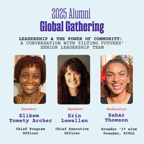 Each year, Tilting Futures proudly hosts a virtual Global Gathering for our alumni! This event brings together over 1,700+ alumni from the Fellowship, Academy, and Take Action Lab programs, spanning more than 100 countries. It’s an incredible opportunity for our diverse and global community to connect, celebrate achievements, and inspire one another.