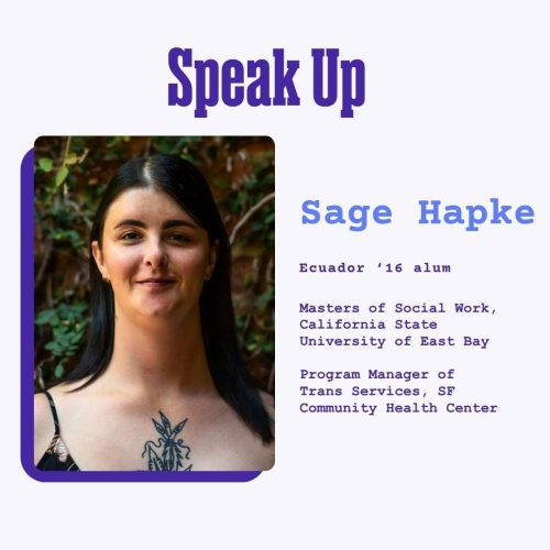 Join to hear a Speak Up from the incredible, Sage Hapke, Ecuador ‘16 alum.