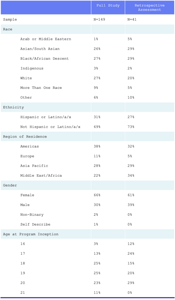 Given evolving theories regarding response shift bias in relation to some of these primary outcomes of interest, and the expectation that the virtual Foundations course shifts students’ understanding and awareness of who they were before the program began, we also administered a limited retrospective assessment with students from the most recent cohort (Aug24 TALSA Term) of the program.